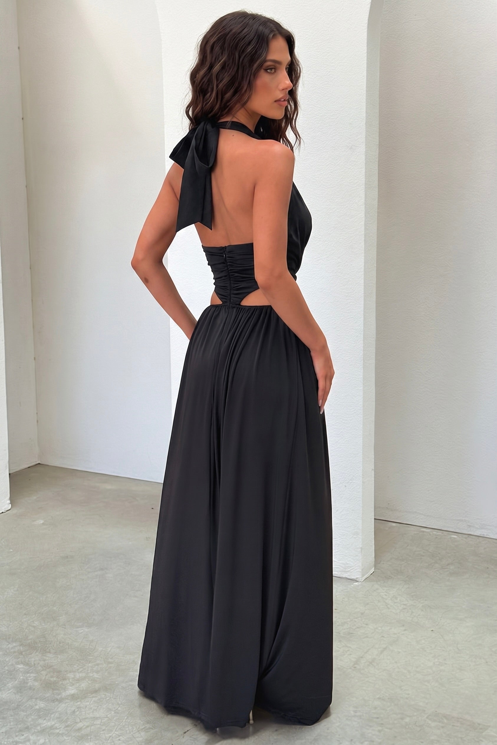 Vestido largo Soraya con escote halter pronunciado - Negro